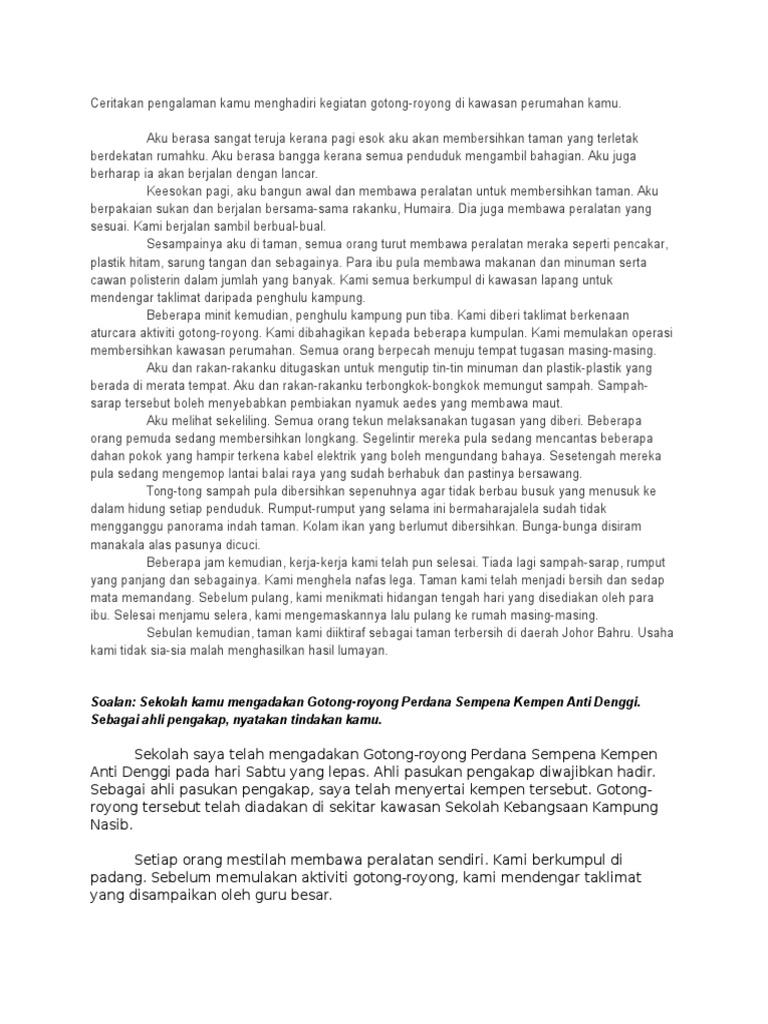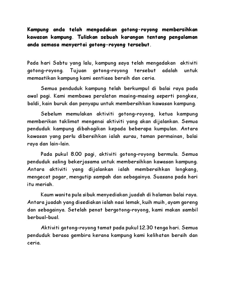 Related : Karangan Pengalaman Gotong Royong Di Kampung / Salah satu sebabnya dikaitkan dengan masyarakat kini yang..